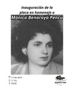 La Asociación de Madres y Familiares de Uruguayos Detenidos Desaparecidos invita a la inauguración de la placa en homenaje a Mónica Benaroyo Pencu, egresada de la Licenciatura en Filosofía de la entonces Facultad de Humanidades y Ciencias, quien fuera detenida desaparecida en 1973, en Chile.